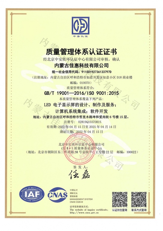 內蒙古佳惠科技有限公司(簡稱佳惠科技)創立于2002年,是內蒙古自治區一家以新型顯示技術融合信息智慧概念的技術企業。公司圍繞智慧金融、智慧政府、智慧教育、智慧醫療、智慧交通等主要應用板塊,以智能硬件搭載智慧軟件平臺的運營模式,構建了方案+科技+服務的三位一體化的戰略體系,賦能電子信息產業數字生態發展。 公司自創建以來,一直秉承著“勤勉佳人,惠實進取”的企業精神,堅...
