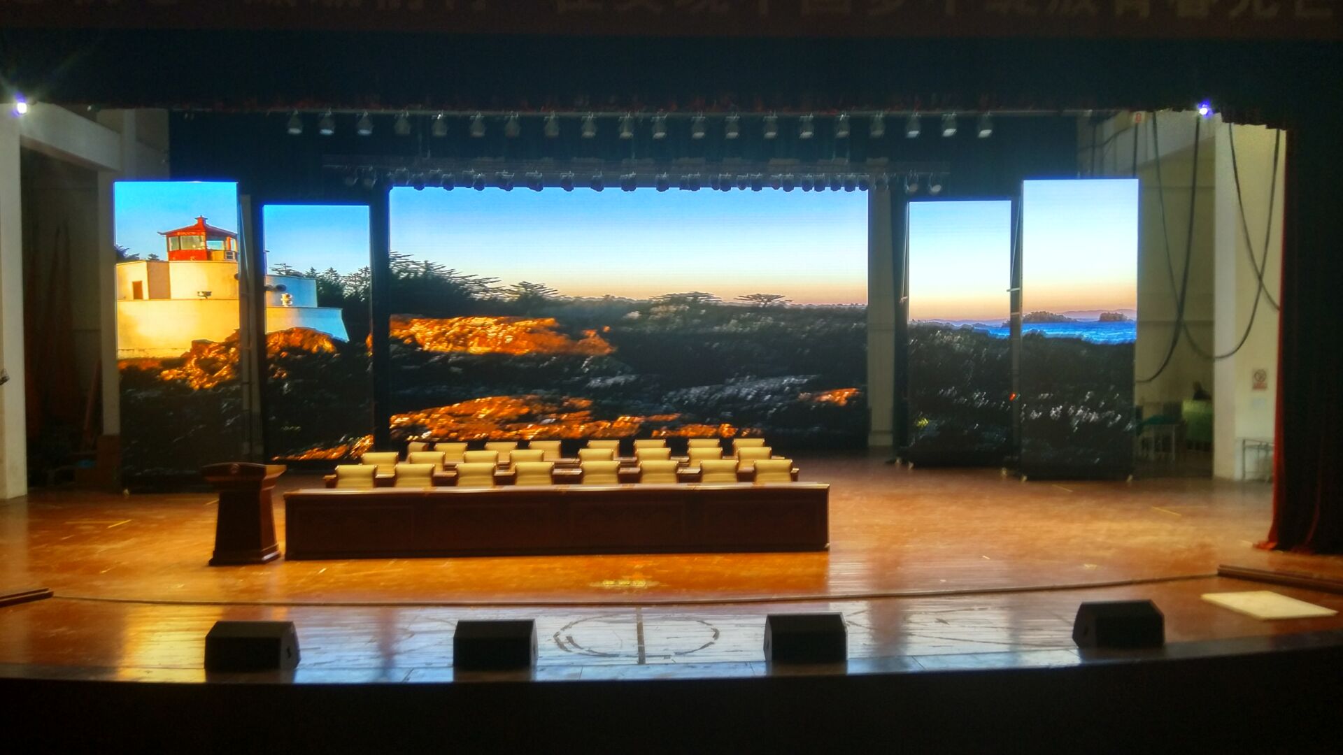 本項目佳惠科技為某學院舞臺區(qū)量身打造的戶內(nèi)全彩LED顯示屏,屏幕整體分為主屏和側(cè)屏兩個部分。主屏幕可用來播放動畫與實時視頻,與舞臺兩側(cè)華麗側(cè)屏交相輝映,打造美輪美奐的視覺效果。佳惠戶內(nèi)全彩LED顯示屏色彩細膩豐富、色彩還原性好、畫面自然逼真,點亮后鮮艷的色彩鋪灑開來,猶如一幅幅美妙的畫卷,讓人陶醉。