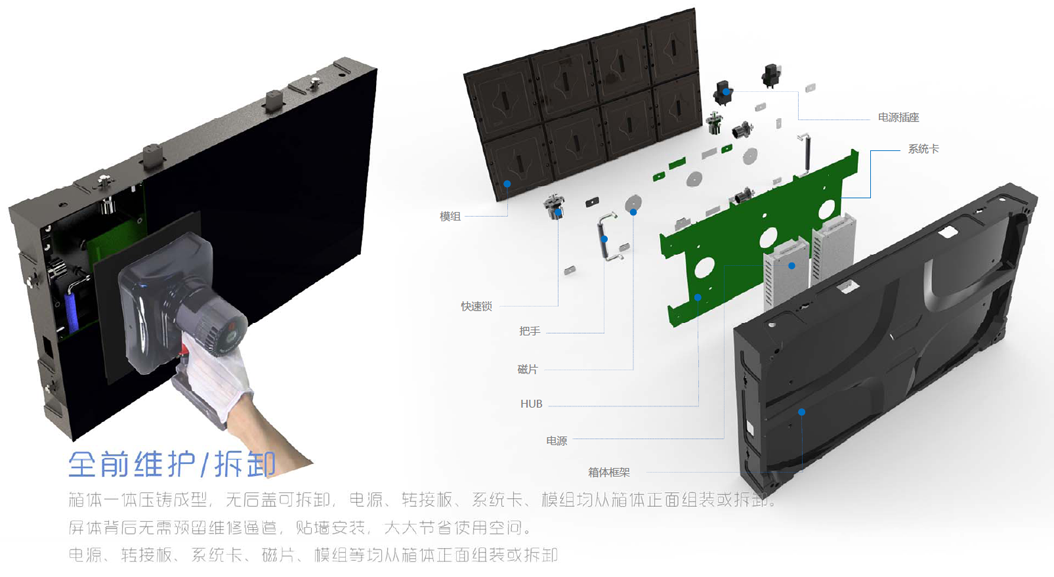 小間距P0.9LED顯示屏具有高刷新、高灰階、高亮度利用率、無殘影、低功耗、低EMI的特點,室內應用不反光;其輕便超薄、精度高,占用運輸及使用空間小、靜音且高效散熱。 可實現任意大小尺寸無縫拼接、模塊化維護。其播放的整個畫面色彩均勻,高清逼真,沒有普通顯示屏常見的汗斑、亮線等不正常顯示,畫面切換柔和不閃爍,畫質非常細膩,直逼電視機的播放效果。